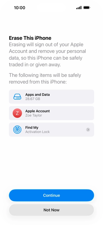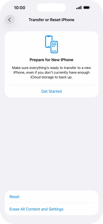 Press Erase All Content and Settings.