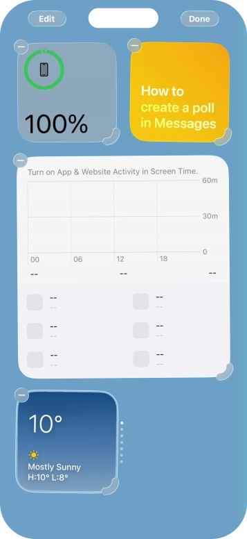 You can use widgets on your phone allowing you to get a quick overview of selected apps. You can choose between different widget sizes, organise widgets in stacks and place them on the home screen.