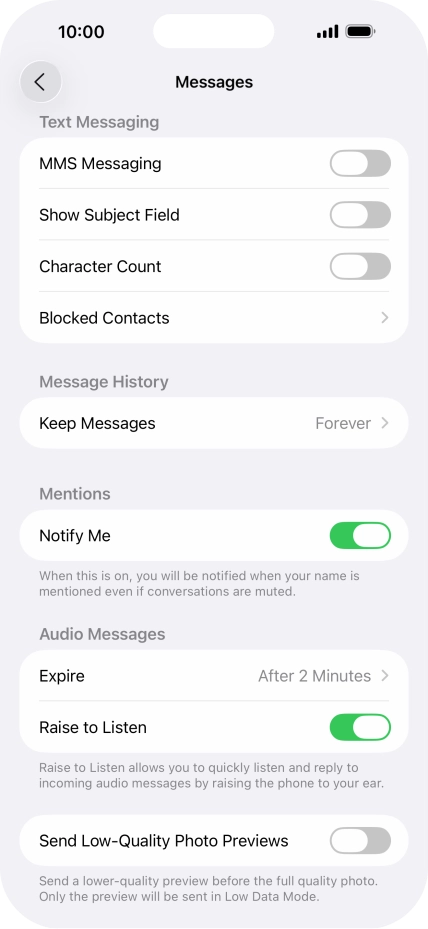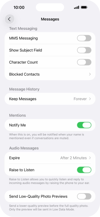 Press the indicator next to "MMS Messaging" to turn on the function.