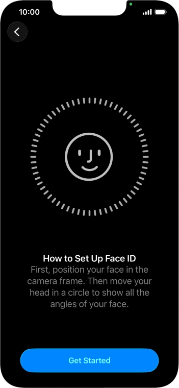 Press Get Started and follow the instructions on the screen to set up Face ID.