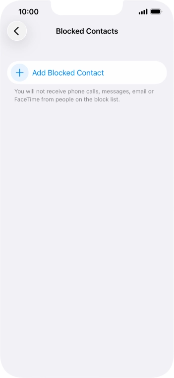 Press Add Blocked Contact and follow the instructions on the screen to block a contact.