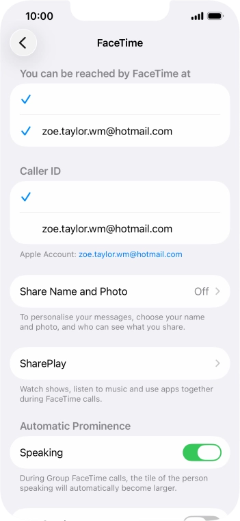 Press the indicator next to "SharePlay" to turn the function on or off.