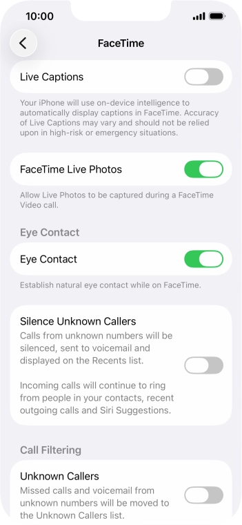 Press the indicator next to "FaceTime Live Photos" to turn the function on or off.