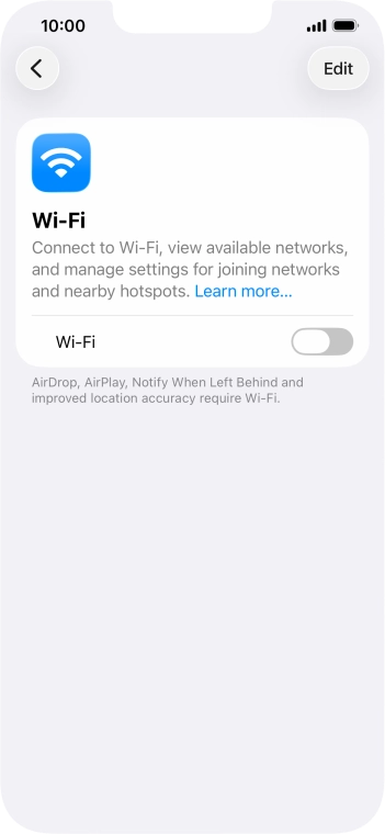 Press the indicator next to "Wi-Fi" to turn on the function.