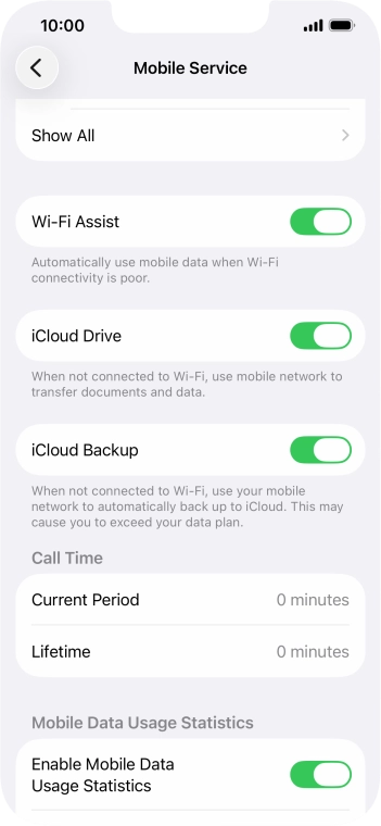 Press the indicator next to "Wi-Fi Assist" to turn the function on or off.