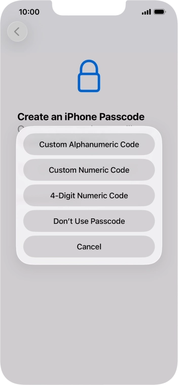 Follow the instructions on the screen to turn on use of phone lock code or press Don't Use Passcode.