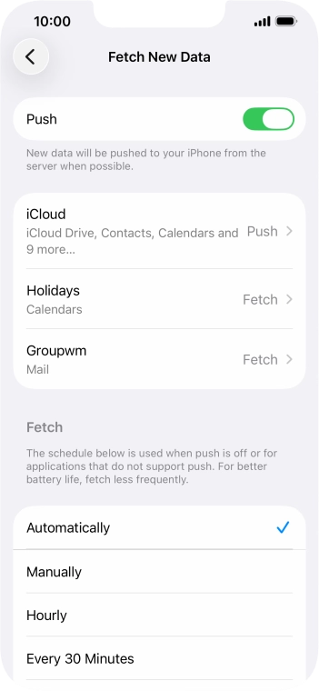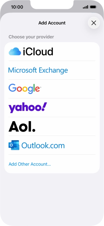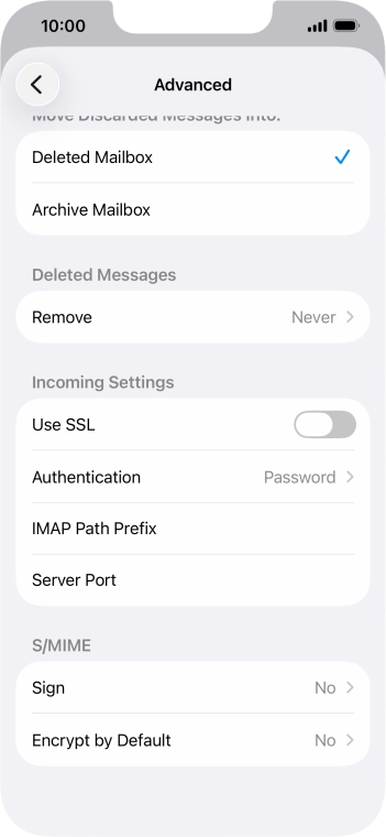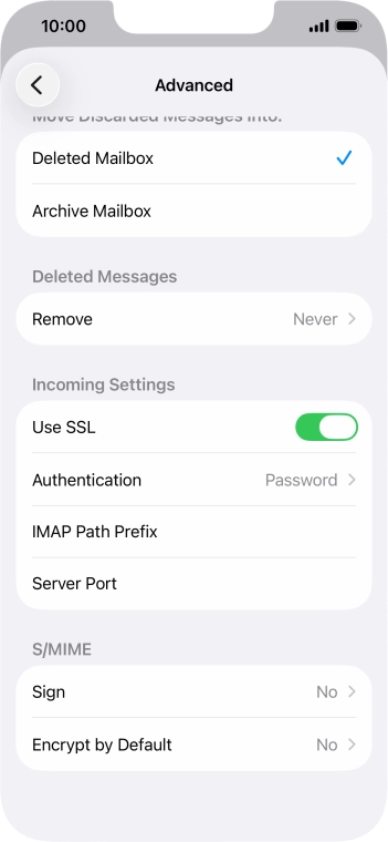 Press the required email account and follow the instructions on the screen to select settings for the specific account.