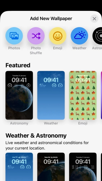 Press Customise and follow the instructions on the screen to customise the selected lock screen.