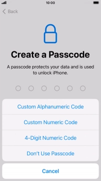 Follow the instructions on the screen to turn on use of phone lock code or press Don't Use Passcode.