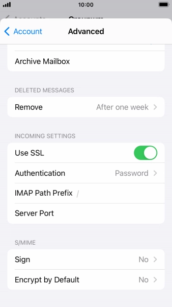 Press the name of the email account you've just set up.
