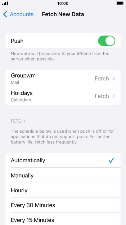Press the required email account and follow the instructions on the screen to select settings for the specific account.
