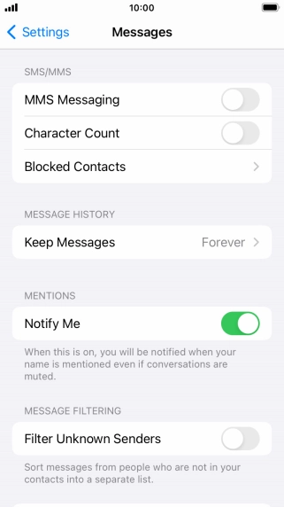 Press the indicator next to "MMS Messaging" to turn on the function.