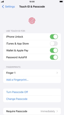 You can set your phone to use your fingerprint as phone lock code or to authorise iTunes and App Store purchases. To use Touch ID, you need to turn on the phone lock code.