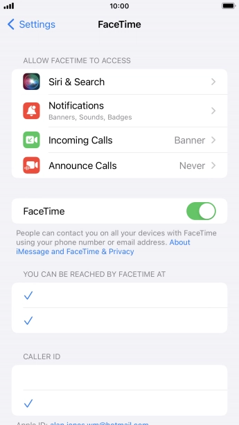 Press the required setting below "YOU CAN BE REACHED BY FACETIME AT".