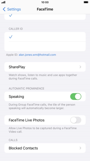 Select FaceTime settings