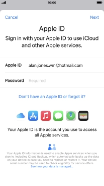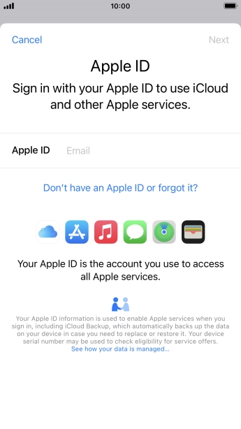 If you don t have an Apple ID, press Don't have an Apple ID or forgot it? and follow the instructions on the screen to create an Apple ID.
