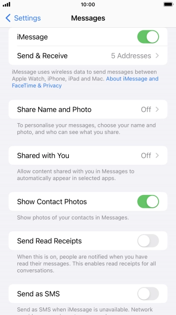Press the indicator next to "Send as SMS" to turn the function on or off.