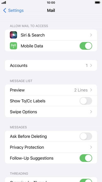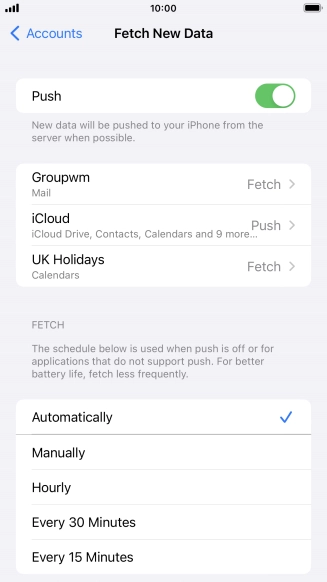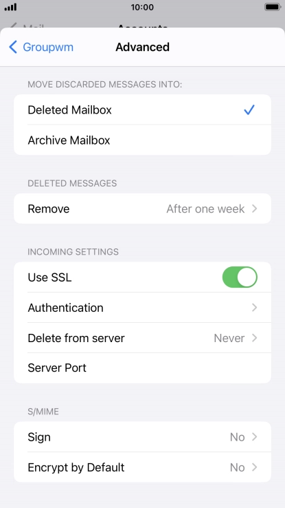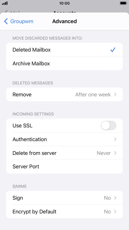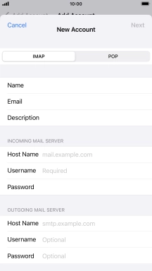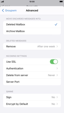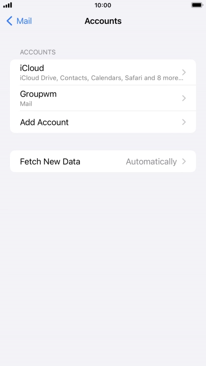 Press the required email account and follow the instructions on the screen to select settings for the specific account.