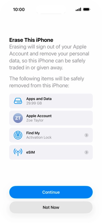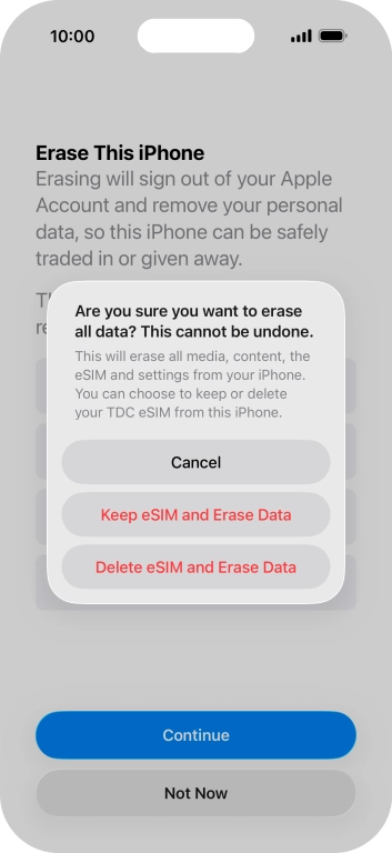 Press Erase All Content and Settings.