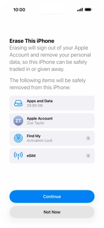 Key in the password for your Apple Account and press Turn Off. Wait a moment while the factory default settings are restored. Follow the instructions on the screen to set up your phone and prepare it for use.