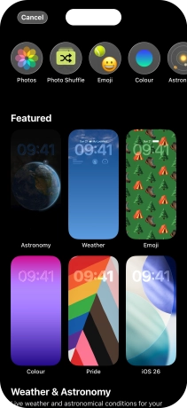 Press Customise and follow the instructions on the screen to customise the selected lock screen.