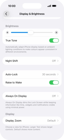 Press the indicator next to "Always On Display" to turn the function on or off.