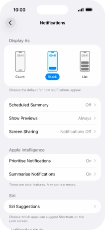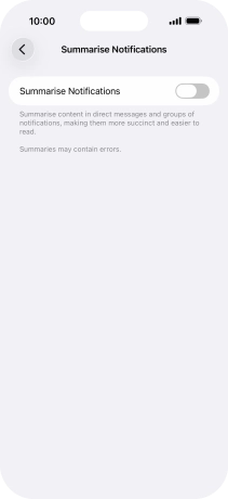 Press the indicator next to "Summarise Notifications" to turn the function on or off.