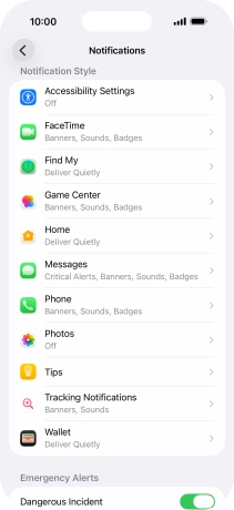 Press the indicator next to "Allow Notifications" to turn notifications for the selected application on or off.