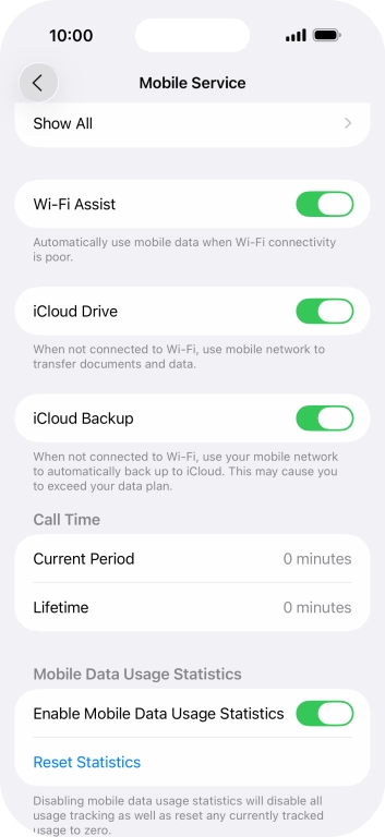 Press the indicator next to "Wi-Fi Assist" to turn the function on or off.