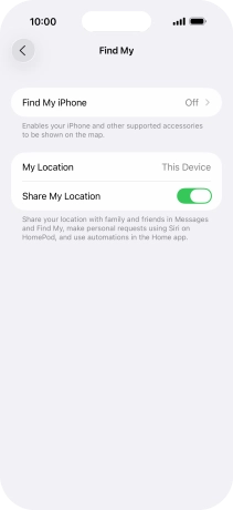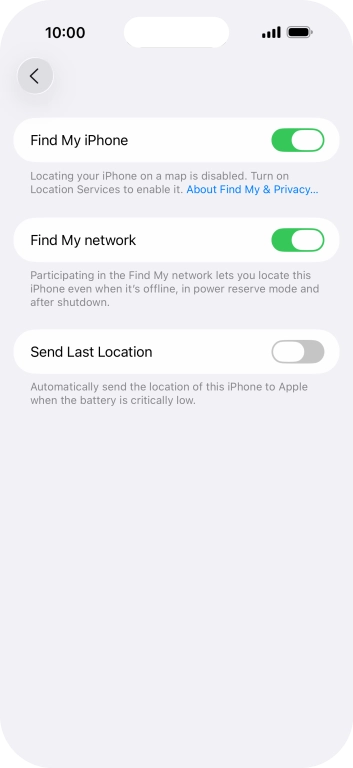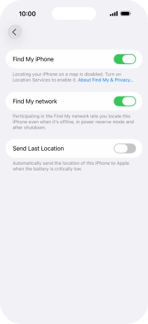 Select settings for Find My iPhone