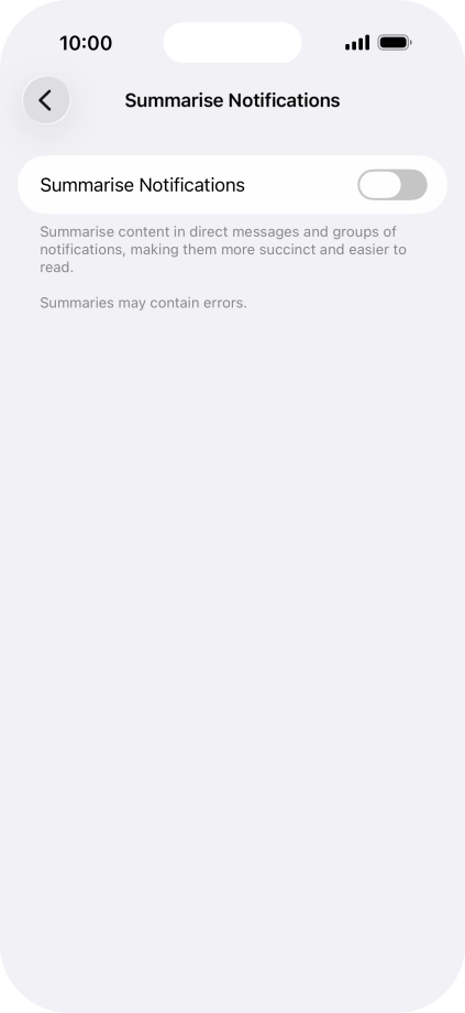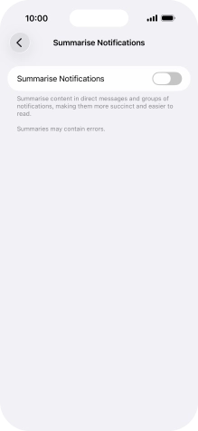 Press the indicator next to "Summarise Notifications" to turn the function on or off.