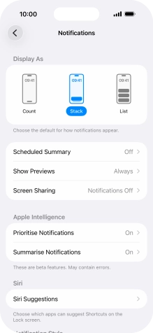 You can use Apple Intelligence to prioritise important and time-sensitive notifications. High priority notifications appear at the top of the notification list. To use the function, you need to turn on Apple Intelligence.