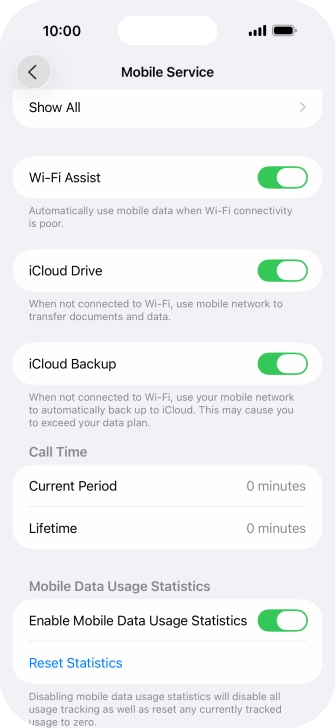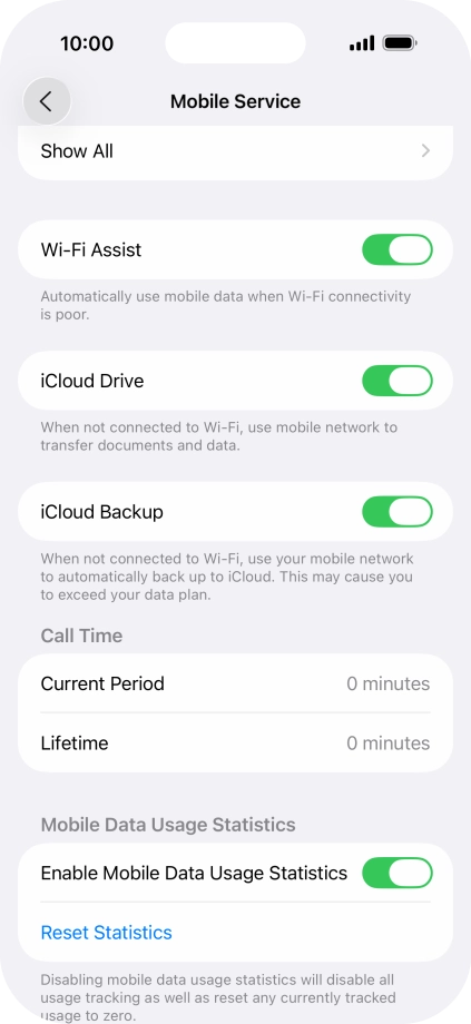 Press the indicator next to "Wi-Fi Assist" to turn the function on or off.