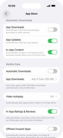 Press the indicator next to "Automatic Downloads" to turn the function on or off.