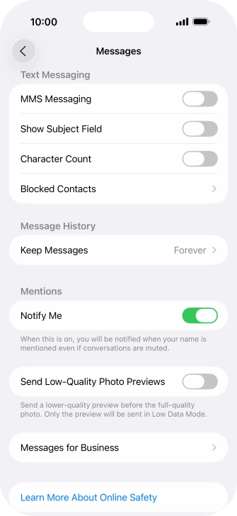 Press the indicator next to "MMS Messaging" to turn on the function.