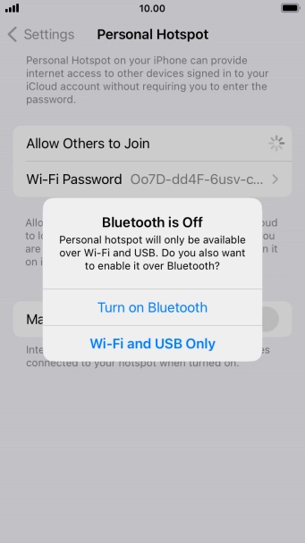 2. 2. Key in the password for personal hotspot