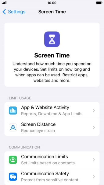 Press Screen Time and optionally select the required member of your family group.