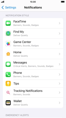 Press the indicator next to "Allow Notifications" to turn notifications for the selected application on or off.