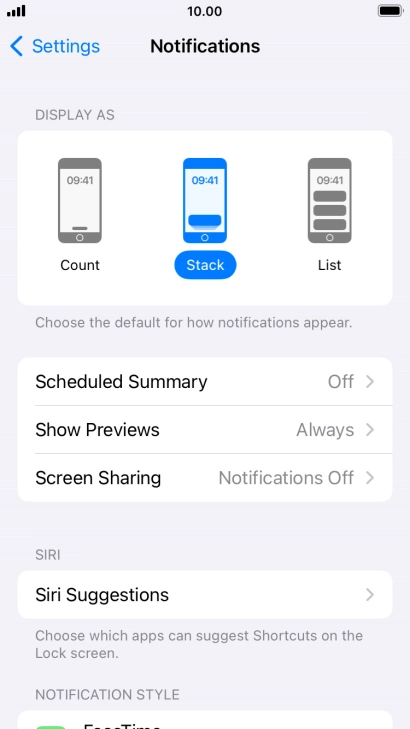 You can turn display of notifications when using SharePlay or Screen Mirroring on or off.
