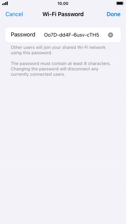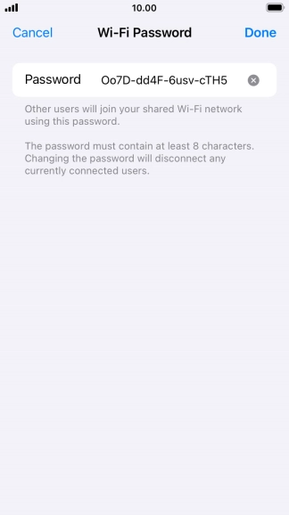 2 Key in the password for personal hotspot