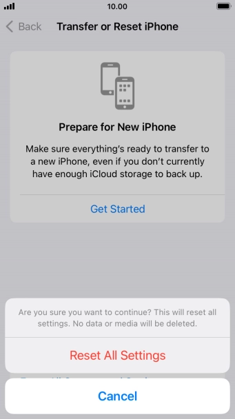 Press Reset All Settings. Wait a moment while the factory default settings are restored. Follow the instructions on the screen to set up your phone and prepare it for use.