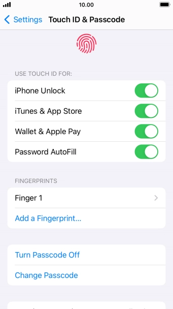 You can set your phone to use your fingerprint as phone lock code or to authorise iTunes and App Store purchases. To use Touch ID, you need to turn on the phone lock code.