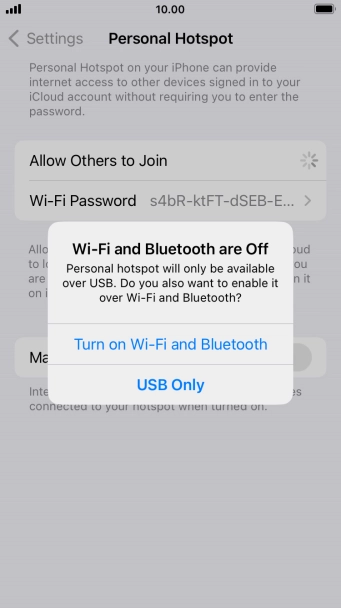 If Wi-Fi is turned on, press Wi-Fi and USB Only.