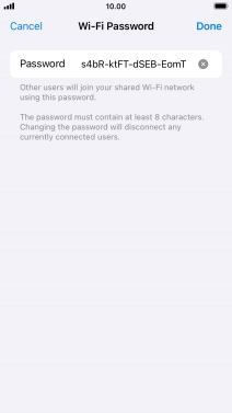 2 Key in the password for personal hotspot