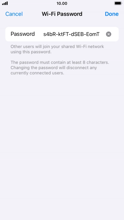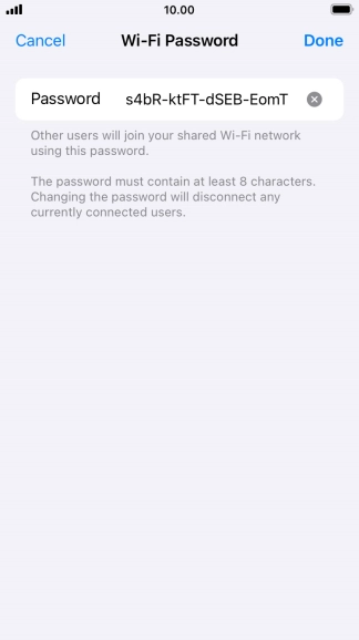 Key in the password for personal hotspot