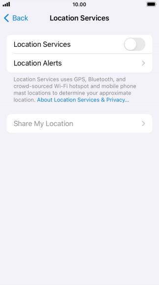 Press the indicator next to "Location Services" to turn the function on or off.