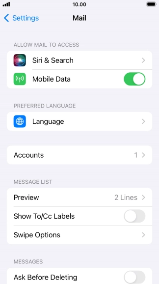 Press the required email account and follow the instructions on the screen to select settings for the specific account.