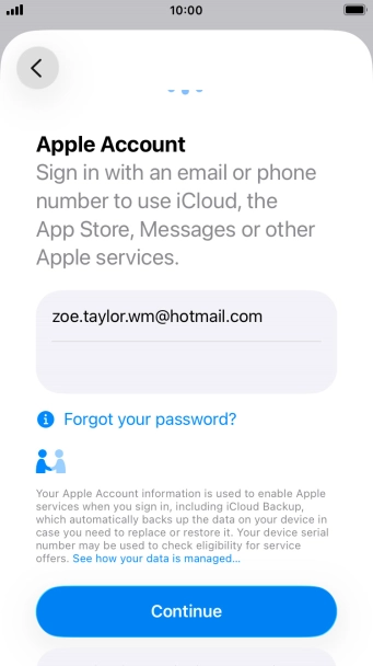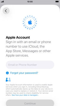 An Apple Account gives you access to a number of services on your phone such as iCloud, App Store and iTunes. To activate an Apple Account on your phone you need to set up your phone for internet.