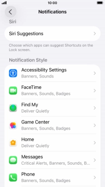 Press the indicator next to "Allow Notifications" to turn notifications for the selected application on or off.