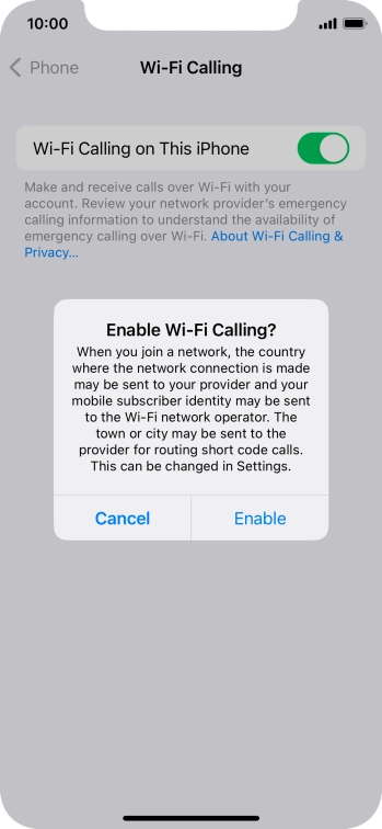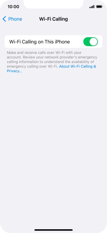 Press the indicator next to "Wi-Fi Calling on This iPhone" to turn the function on or off.